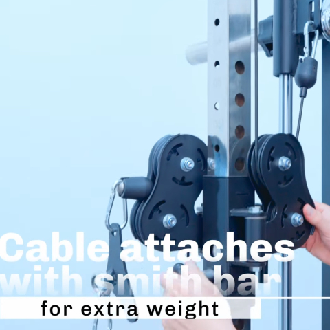 Using the connected system, the weight stack can be used to counter balance the weight of the smith bar to make it lighter. This feature is good for user who are unable to lift even the empty bar weight.