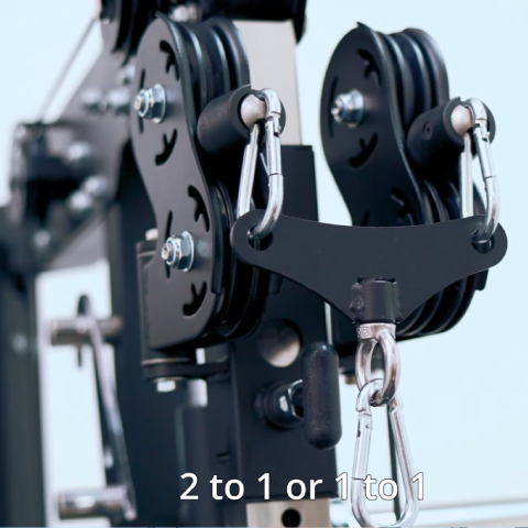 By engaging the 2:1 ratio you can turn your 90kg weight stack into 45kg of resistance and instantly swap it back to a 1:1 ratio - 90kg of resistance.