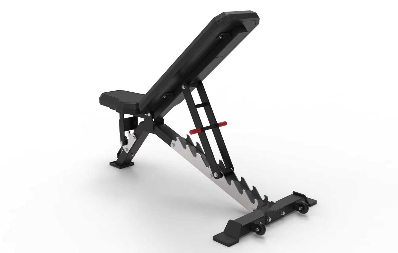 Forged from steel, this adjustable bench is built for versatility: boasting 9 backrest positions and 3 seat adjustments, you can bait and tackle everything from flat bench presses to incline chest flys and dumbbell shoulder presses. Like all the benches in Bolt's fleet even under heavy use it’s chip-resistant powder-black finish maintains a sharp look. The 2.5-inch-thick upholstery delivers comfort, while wheels and rubber feet add mobility and stability. Dive in with the Barracuda by Bolt Fitness Supply and elevate your training today.