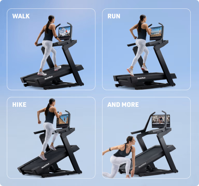 One machine for any workout. Walk, run, and hike, then turn the screen for strength, yoga, and more.