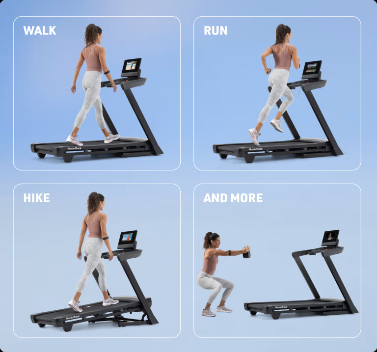 One machine for any workout. Walk, run, and hike, then turn the screen for strength, yoga, and more.