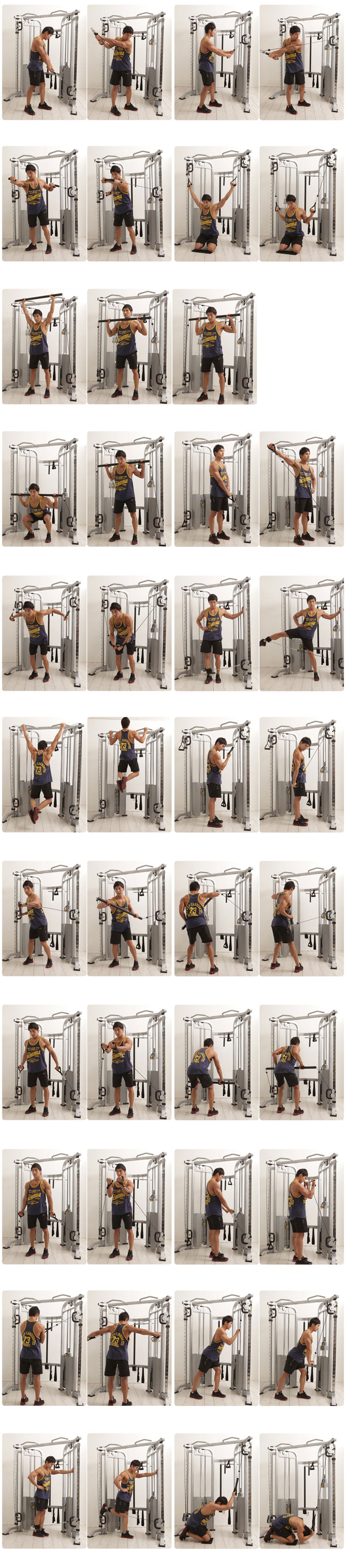 The best multi-gym in the market! Perform hundreds of exercises with the dual pulley and attachments. Chest, high low row, rear deltoid, pull up, shoulder press, lateral raise, rotation, upright row, bicep curl, tricep press, kneeling crunch, dead lift, squat, lunge, hip abduction, hop extension, kick back, leg extension, leg curl and many more.