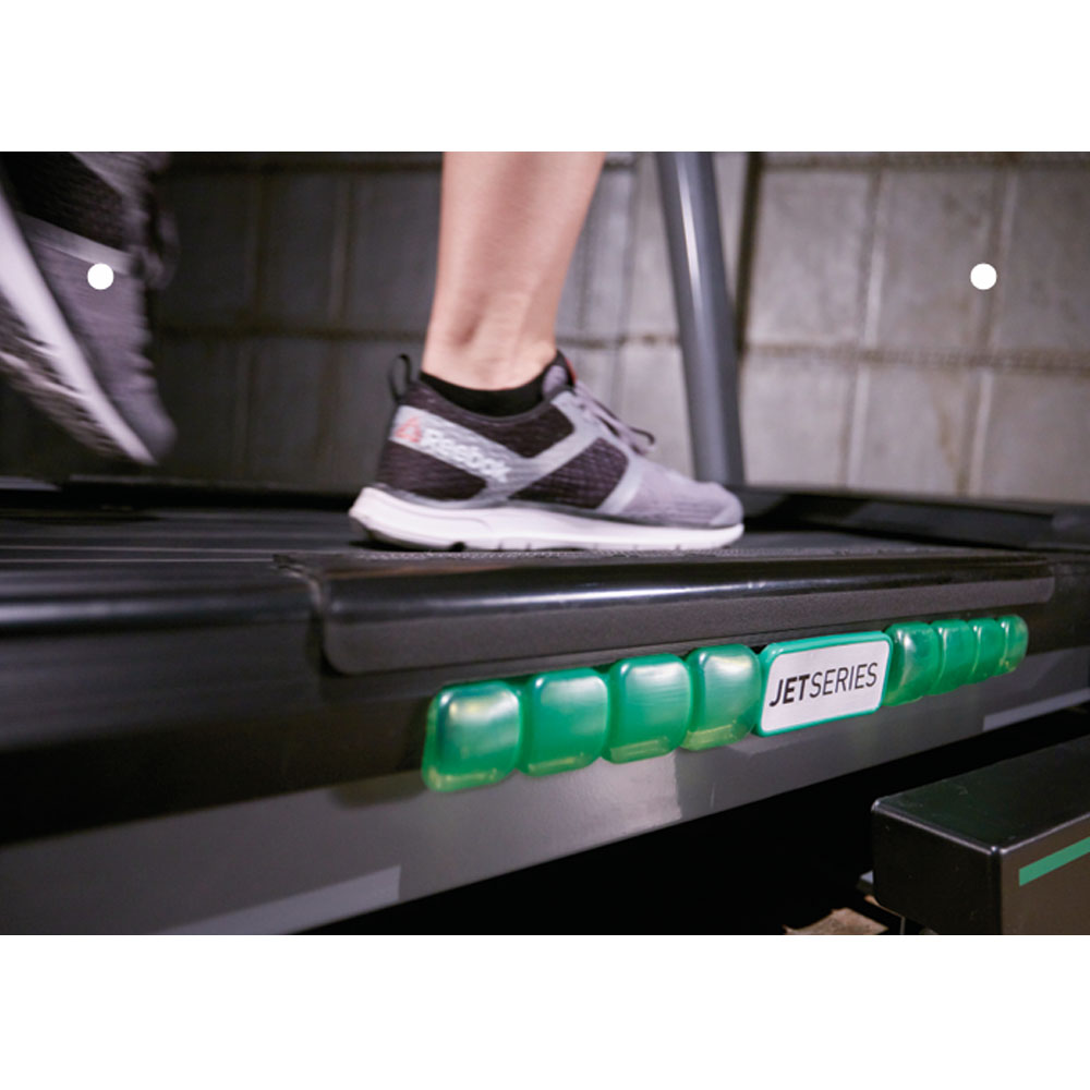 Featuring a large running deck that's suitable for all runners (140 x 46 cm), the Jet 200 treadmill offers Air Motion Cushioning Technology that transfers air between its eight cushioning pods to reduce the toll taken on your ankles and knees; helping to absorb the impact of each stride to create a smoother and more forgiving experience. Robustly built without compromising on style, the 200 offers a solid max. user weight of 120 kg - delivering assured and durable performance.