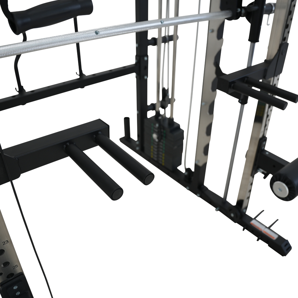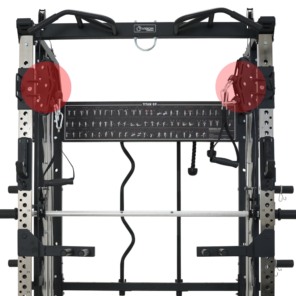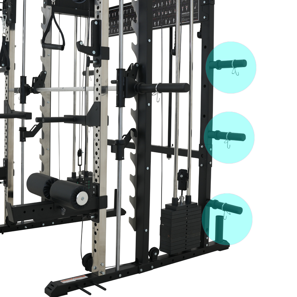 The Brand new Titan G9 comes with many desirable features to suit Singapore houses for home gym setup. It is compact, solid construction and comes with many accessories. The smith bar handle is encased in aluminium cover for rust protection, and the front beam is stainless steel material. Most other parts are powder coated for protection. This all-in-one trainer is built to last with many ever expanding attachments options.