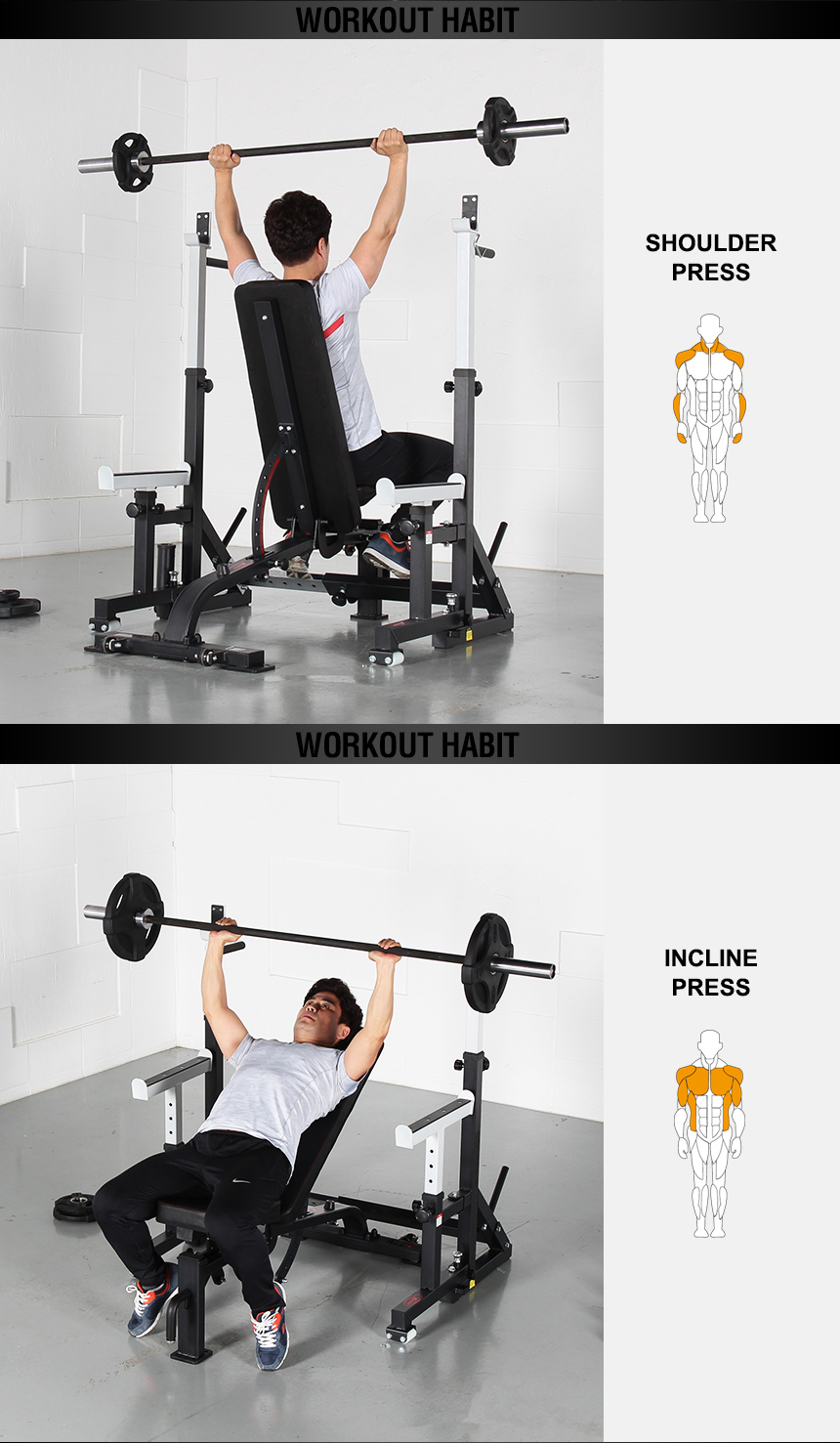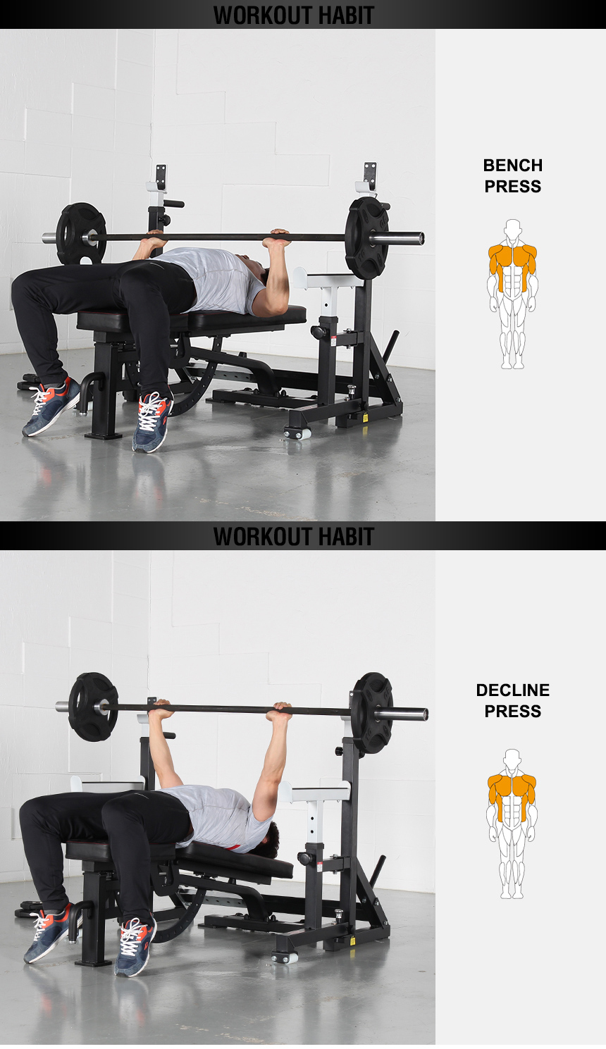 - Fits all bench position (decline, flat, incline)
