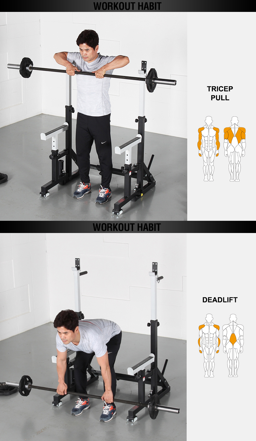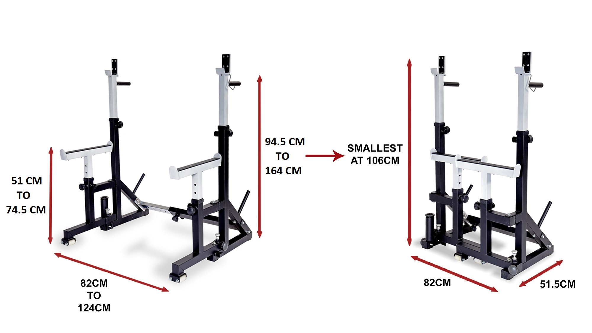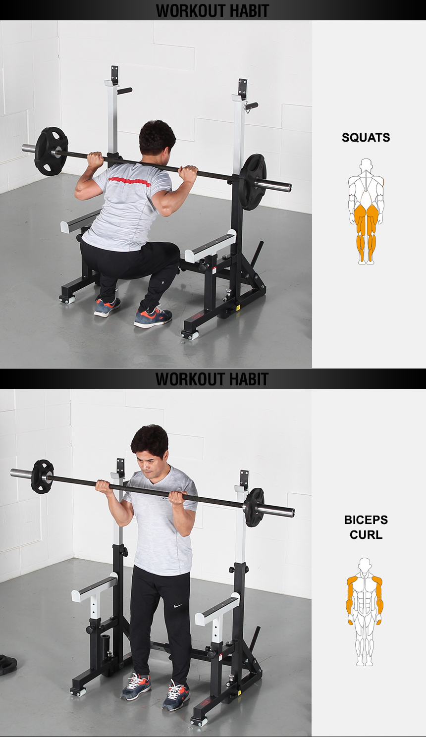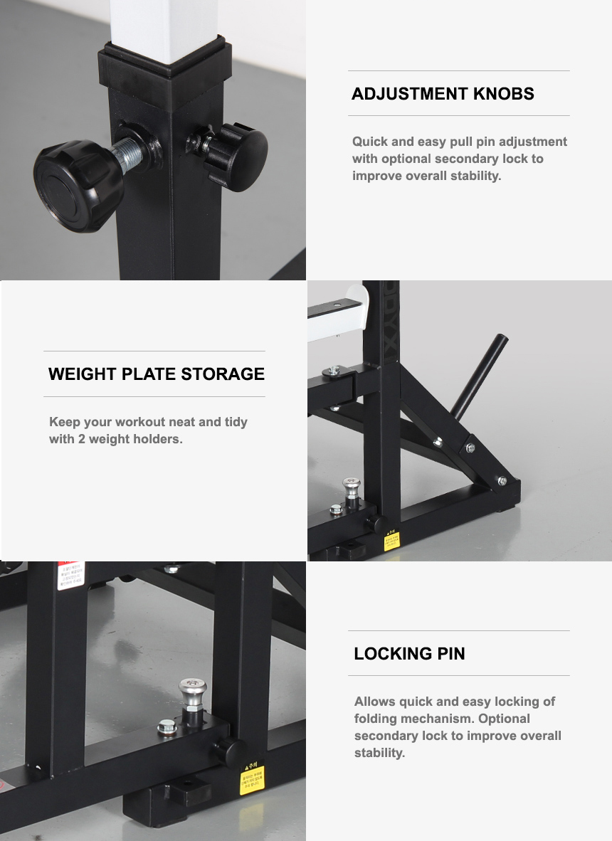 Foldable design allows the squat stand to be stored in a compact manner after every workout. It takes less than 1 minute to fold or unfold.