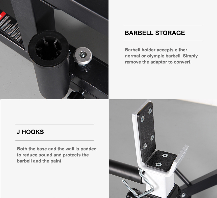 Keep your workout neat and tidy with 2 weight holders, and a barbell holder which is suitable for both normal and olympic barbell.
