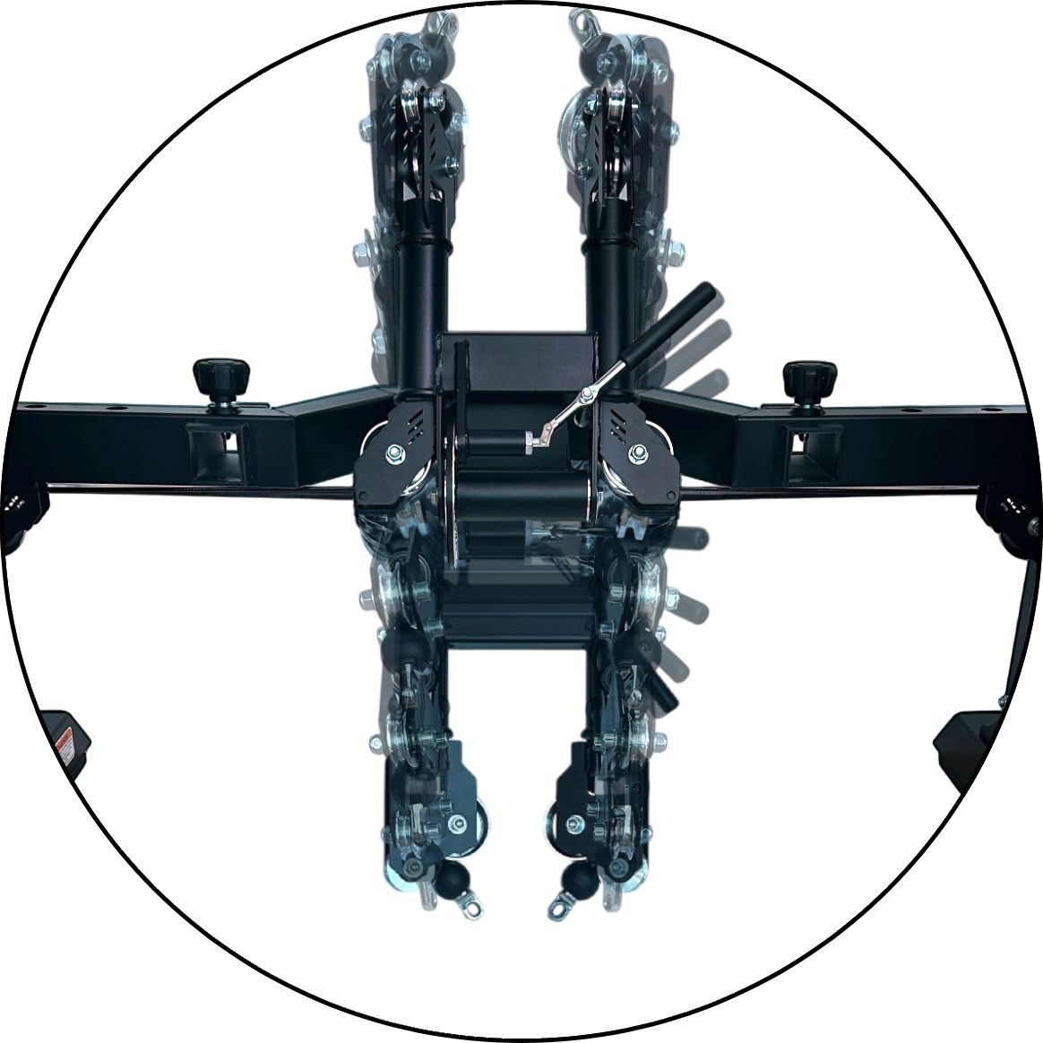 Middle dual pulley is able to adjust to 11 different positions with 1:1 cable ratio for each outlet.