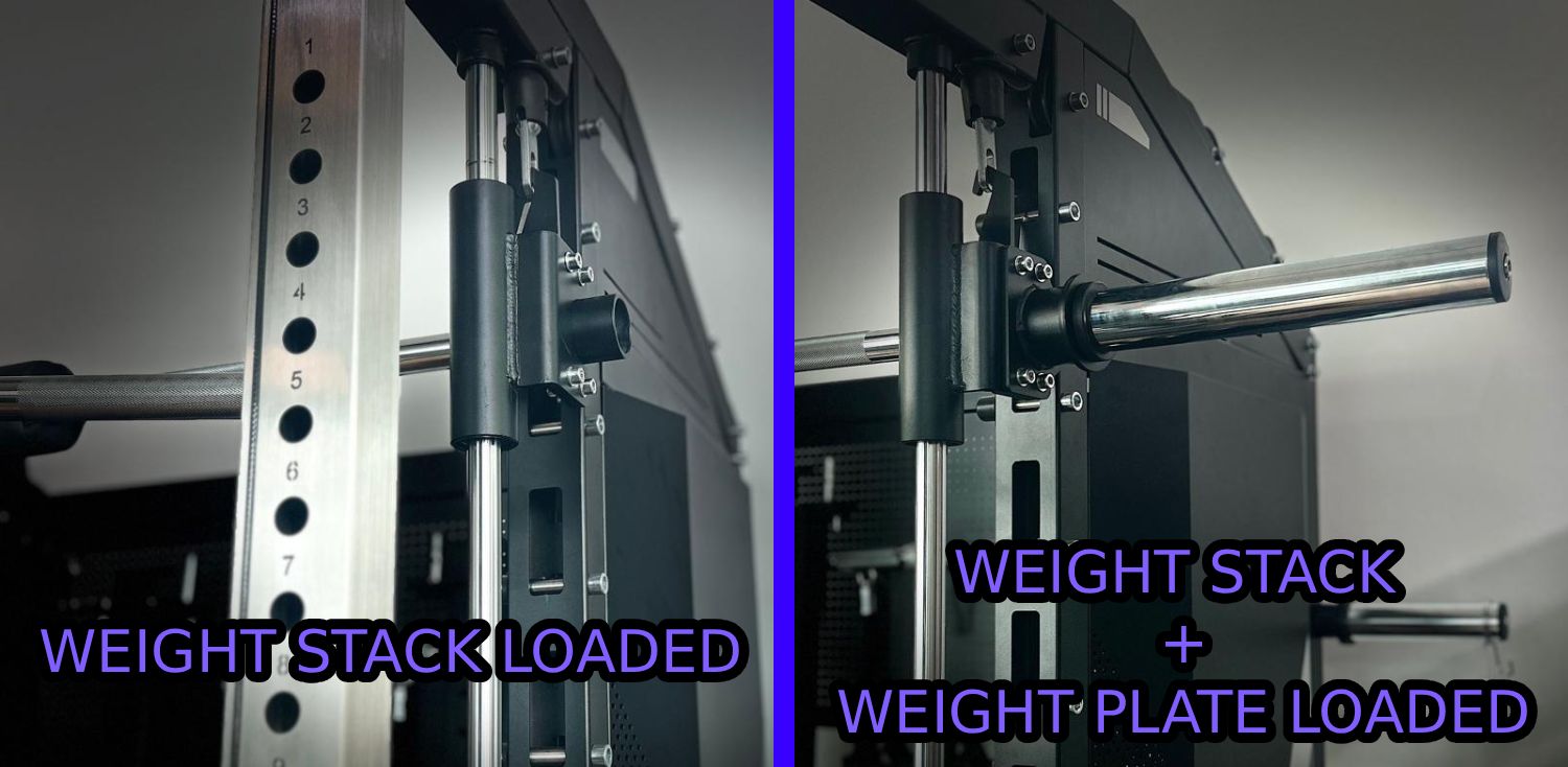 Extra cables provided to link weight stack to the smith bar to achieve 0kg starting weight