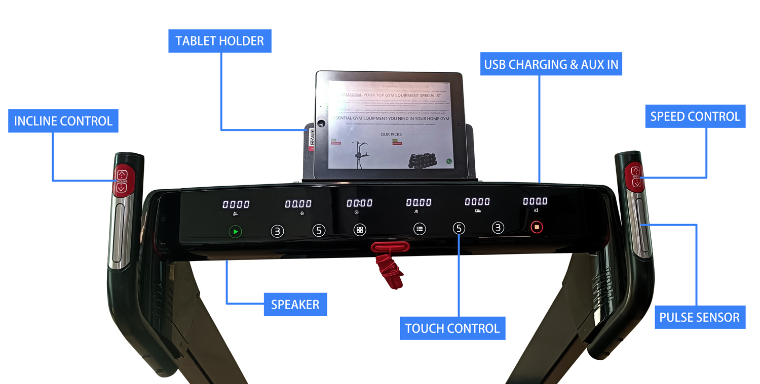 • DESIGN: State of the art modern design offers large deck space to run or walk, but compact enough to fit in most areas of the home. 6 separate LED windows clearly display all the important workout data i.e. Incline level, Heart Rate, Calories, Time, Distance, Step Count, Speed.